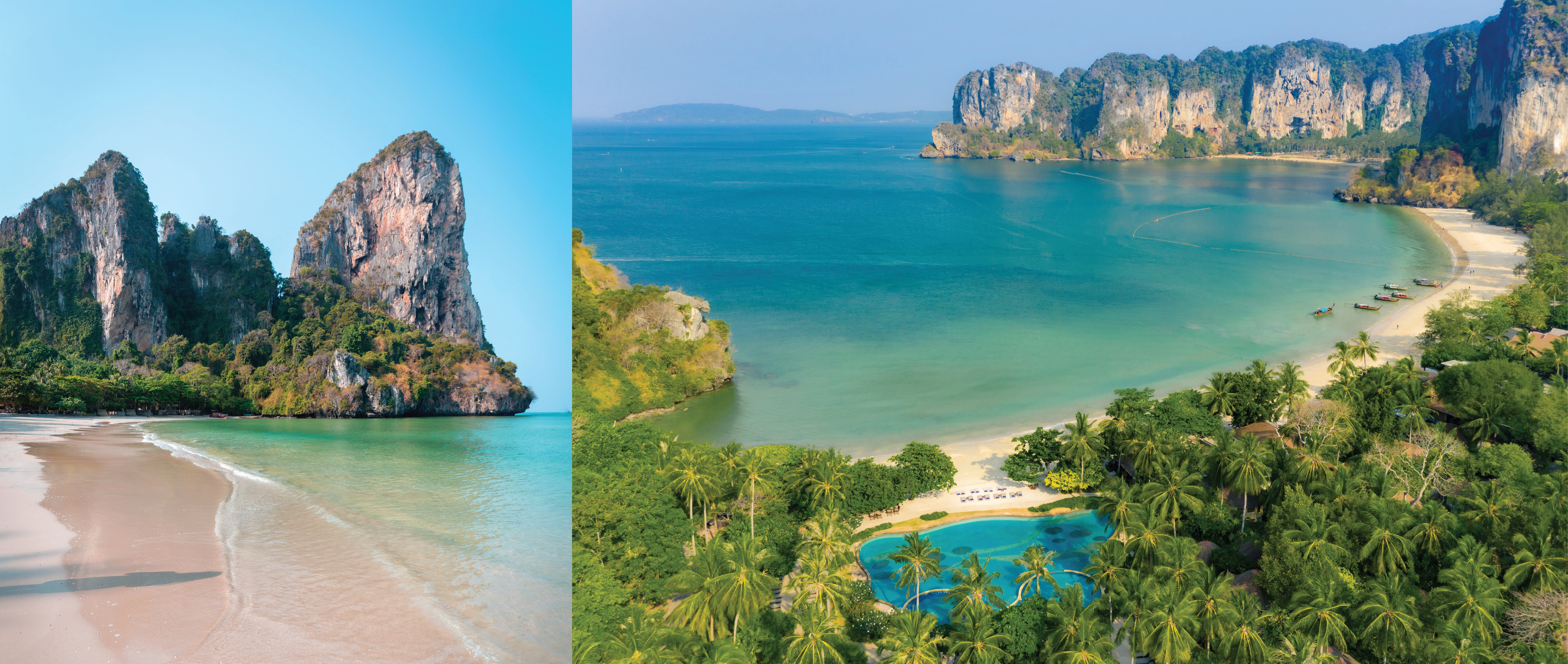 Setting on the edge of Krabi's National Marine Park at the heart of the stunning Phranang Peninsula perfectly blends lush foliage, limestone cliffs, white sand beaches and the emerald waters of the Andaman Sea. The resort's award winning architecture and tropical landscapes were inspired by the atmosphere of a southern Thai village. For more information visit: www.rayavadee.com, Facebook at @rayavadee, Instagram @rayavadee.krabi